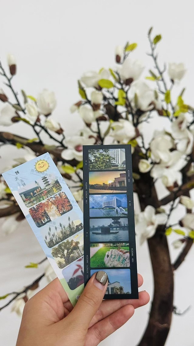 把校园四季风景浓缩在书签上上,兼具观赏性与实用性,翻开书本就能邂逅校园美好。