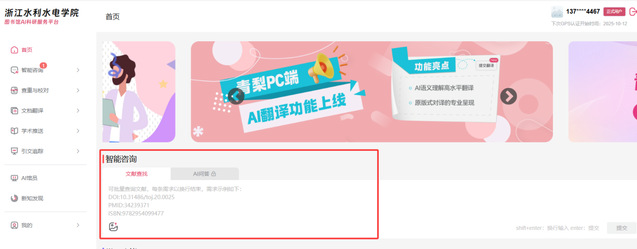 (1)在“智能咨询”中输入文献标题或DOI、ISBN等资源信息并提交